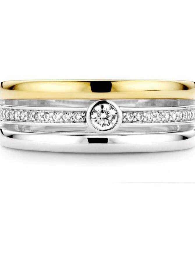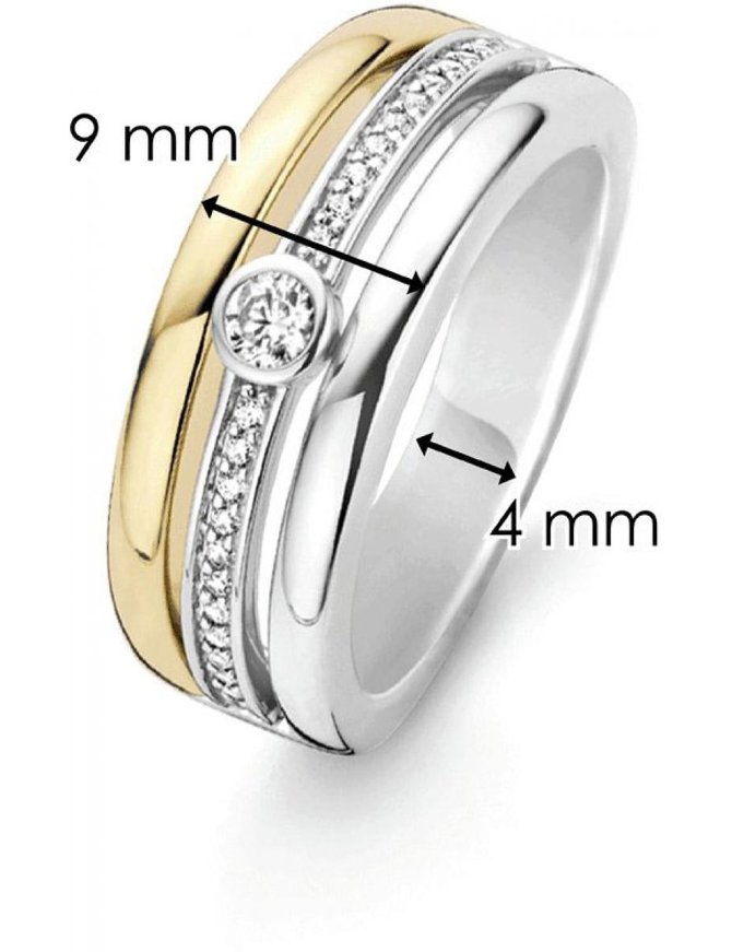 Bague bicolor Ti Sento en argent rhodié et or taille 54 et cristaux de swarovski